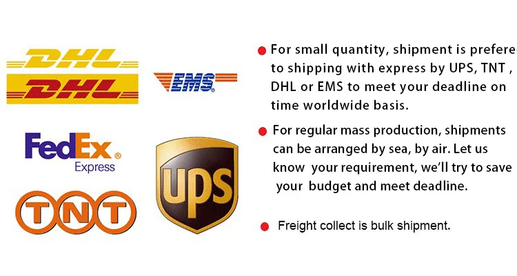 A: We usually ship by DHL, UPS, FedEx or TNT. It usually takes 3-5 days to arrive. Airline and sea shipping also optional.
