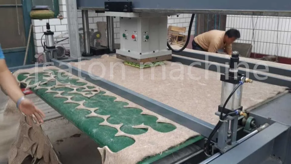 1.Digital control system of "PLC+coder"human-machine interface is adopted to realize ,automatic feeding, pattern arrangement and cutting.five kinds of arrangement figures are optional for automatically setting cutting times with high precision.the positioning precision can reach 0.2mm so as to save materials,enhance work efficiency and reduce labor intensity.