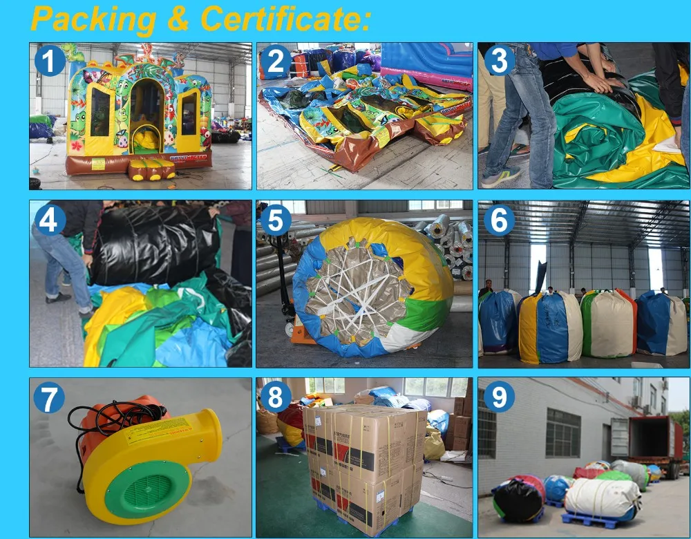 It is included large inflatable water pool toys, blower or pump, repair kits (including the PVC materials, glue, Etc.).