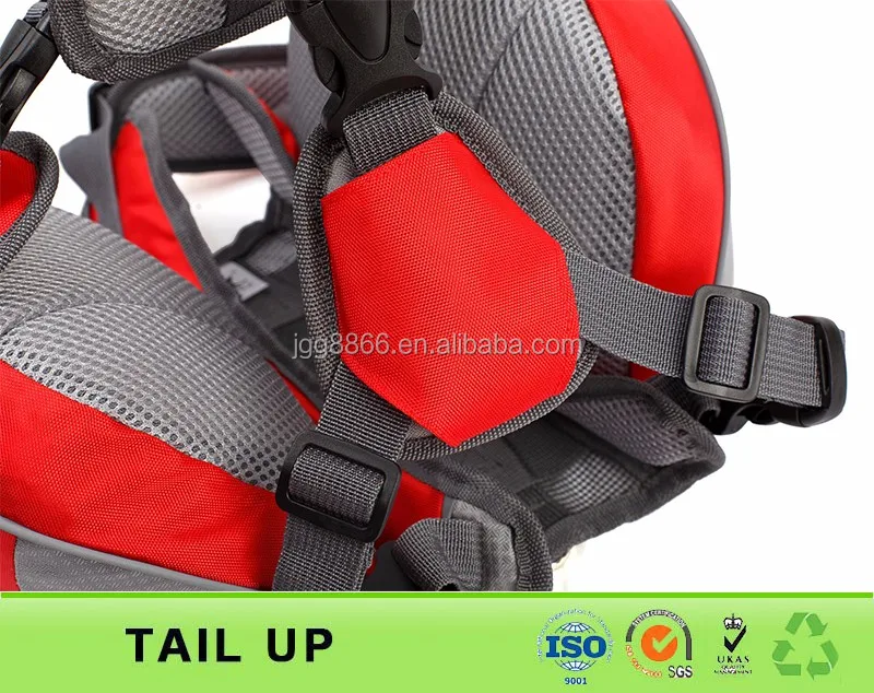 4) Three point padded harness with buckles to fit securely and stay comfortable