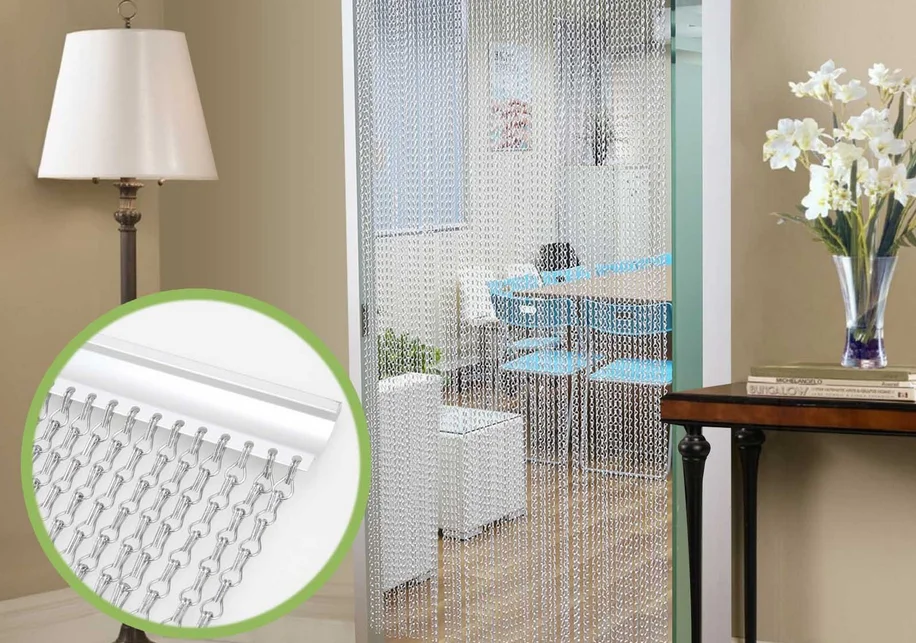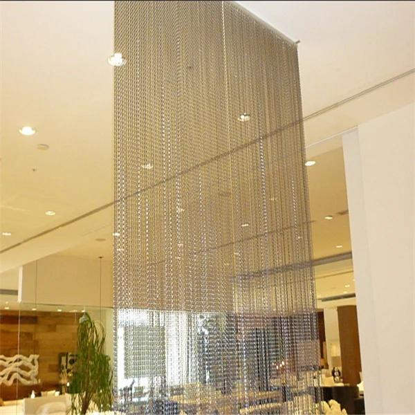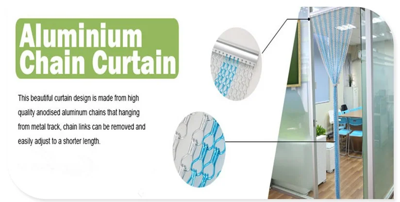Chain link curtain, also named chain fly screen, is made from aluminum wire with anodized surface treatment. As we all know, aluminum material is lightweight, recyclable, durability and has flexible structure.