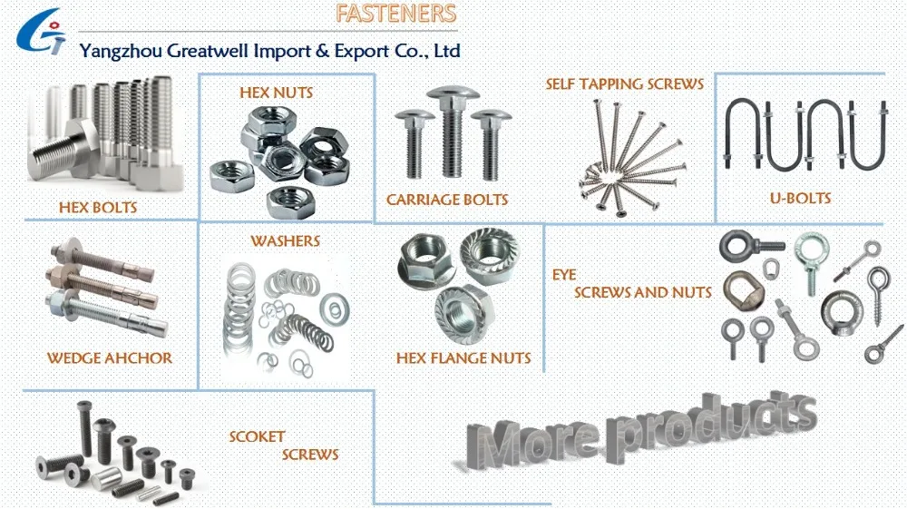A:Fasteners and Hardware, Bolt, nut, screws, washer, hinges,threaded rod, anchors, self tapping screws, self driling screws, stainless steel plate, etc.