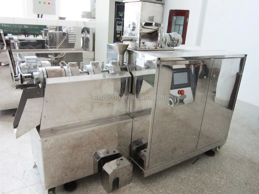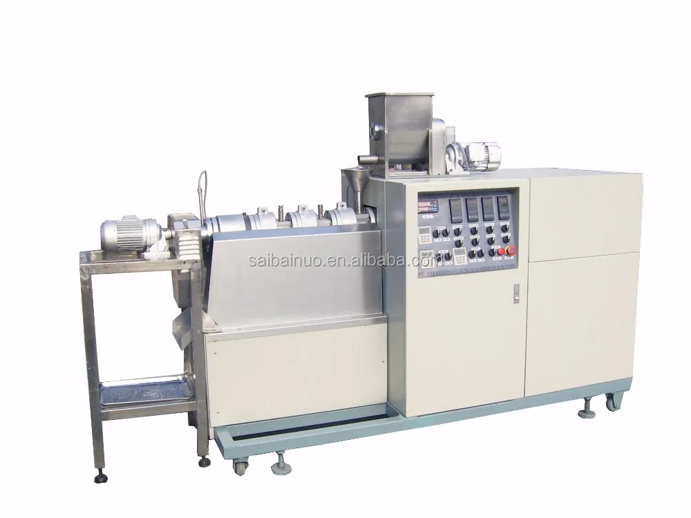 Laboratory Extruder adopt corn, rice, wheat, oat, barley etc as ingredients to make puffed snack. Through friction of screw and barrel, the grains are cooked in the extruder. Forming is at the die face cutter. The product shape is determined by