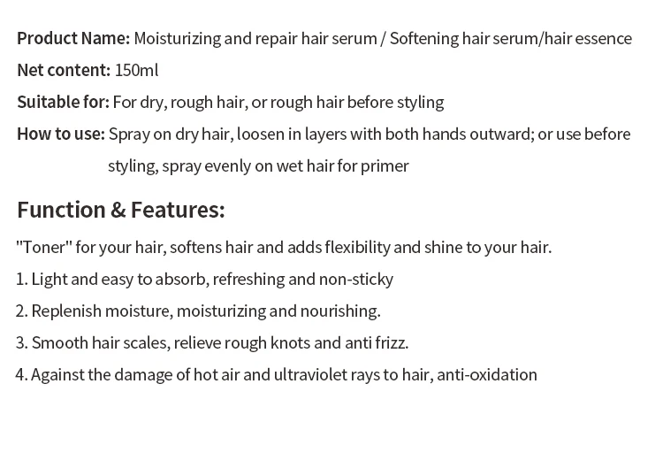 Product Name | Moisturizing and repair hair spray | ||||||
