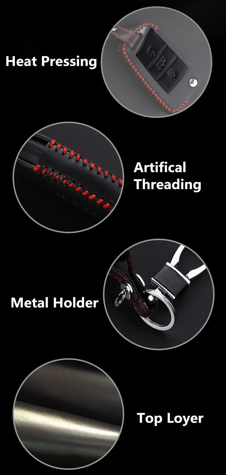 3D Black Car Remote Aritifical Threading Leather Car Key Case Cover For VW  Gol7 Skoda CC