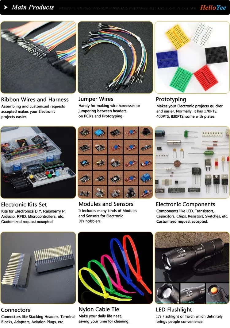 A specialist supplier of a wide range of Electronic parts such as Wires and Cables, Prototyping Kits, Electronic Components, Connectors, Modules, Sensors, Headers, Switches, Aviation Plugs, etc. Items like Nylon Cable Ties, LED Flashlights bring you more convenience. We source, assemble and sell the kits to make your electronics projects possible and life easier. No matter what your vision is, our products, service and resources always cheer you up. The ever-growing product catalog is designed to bring you more good options and delights.