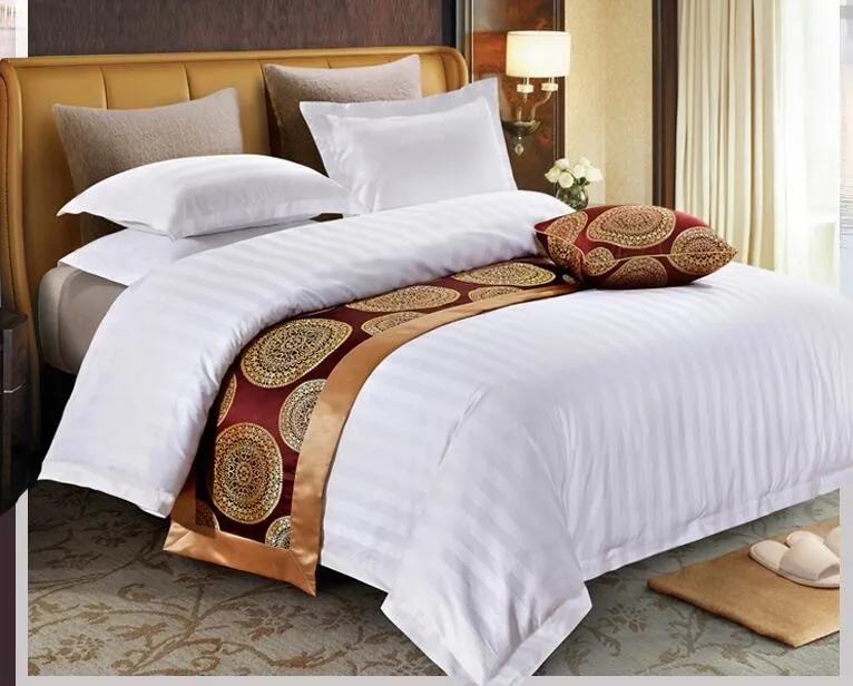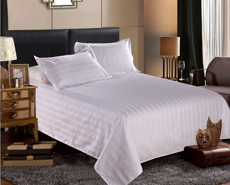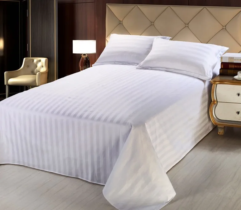 Customized single double queen king white stripe cotton hotel bed sheet flat sheet fitted sheet set from Nantong factory