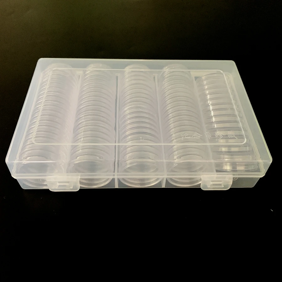 Name:100 coin collection box Model: YHT - 1001720252730MM Material: shell PP material + inner capsule ps, subtransparent shell upper and lower cover can be used for identification packaging!