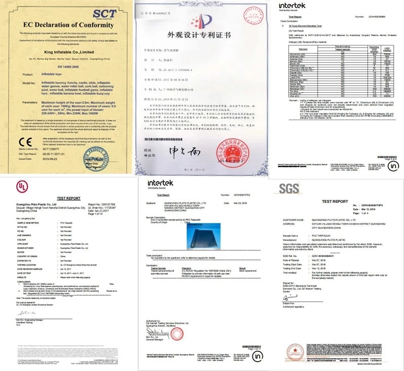 A: Depends on the specific items and needs, we can make it by PVC, PVC tarpaulin or Oxford farbric material, we will use the best quality raw material in this field, which in compliance with EN71, EN14960, CE, UL, SGS standards.