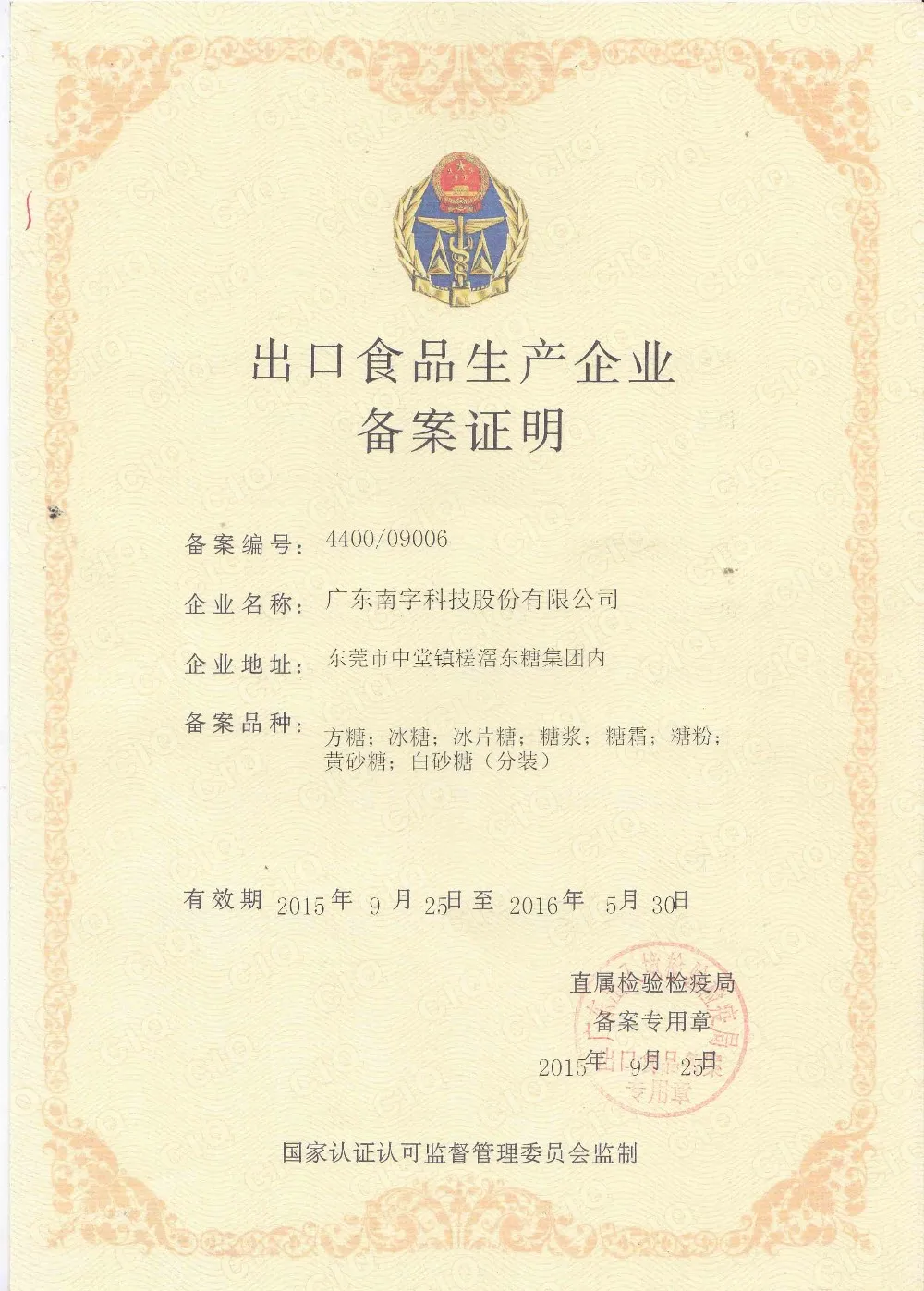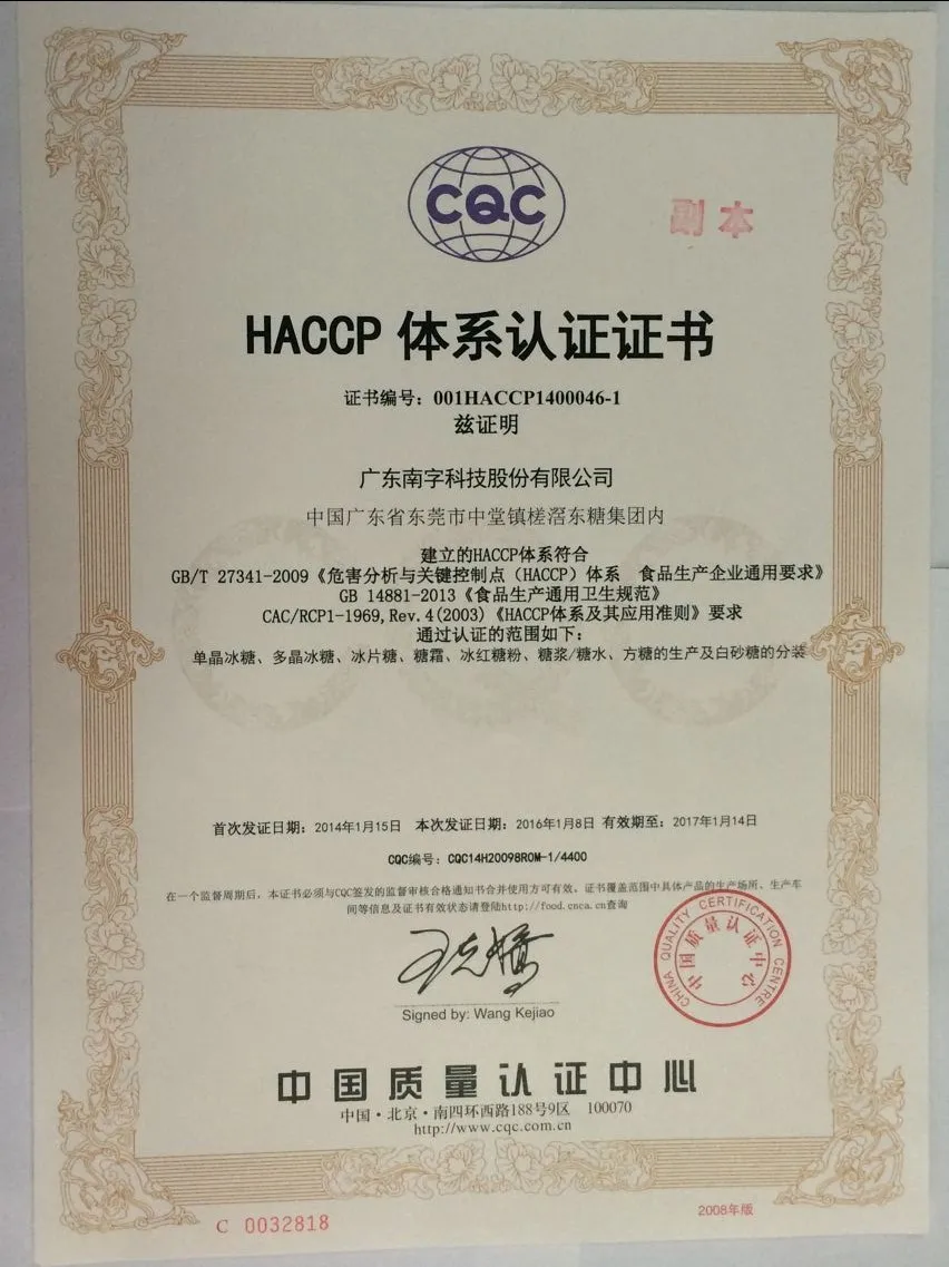 2.Main component:Cane Sugar+Invert Sugar ≥ 92.0%