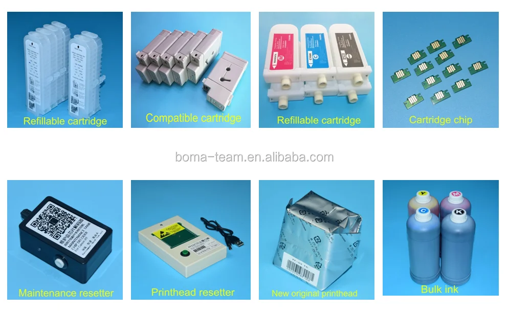Printing inks like Dye ink / Pigment Ink / Sublimation Ink / LED UV ink / Textile Ink / Eco-solvent Ink / Edible Ink / Cleaning liquid