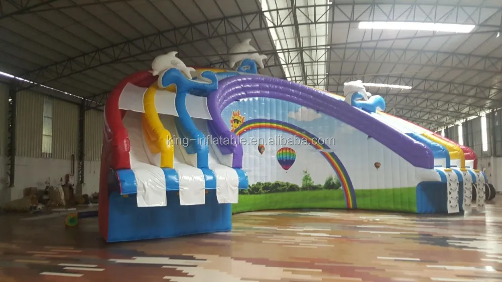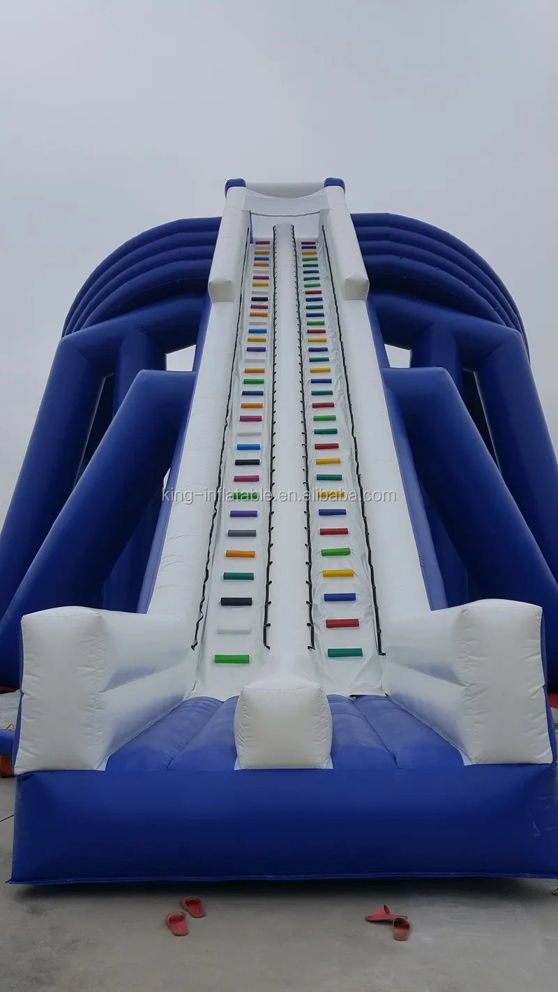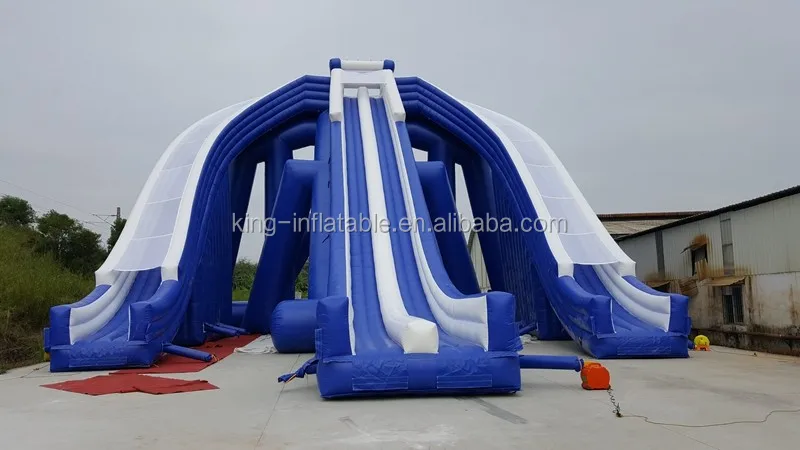 Trippo water slide: Model: King-ws053, size: 71m long*19.3m wide*15m high. It's the World's Largest Inflatable Water Slide. Three slide chutes all coming down from over three stories high which gives an exhilarating experience for all people. it needs 10 blowers,. The slide contains 3 slide lanes, a tube support frame and a climbing.