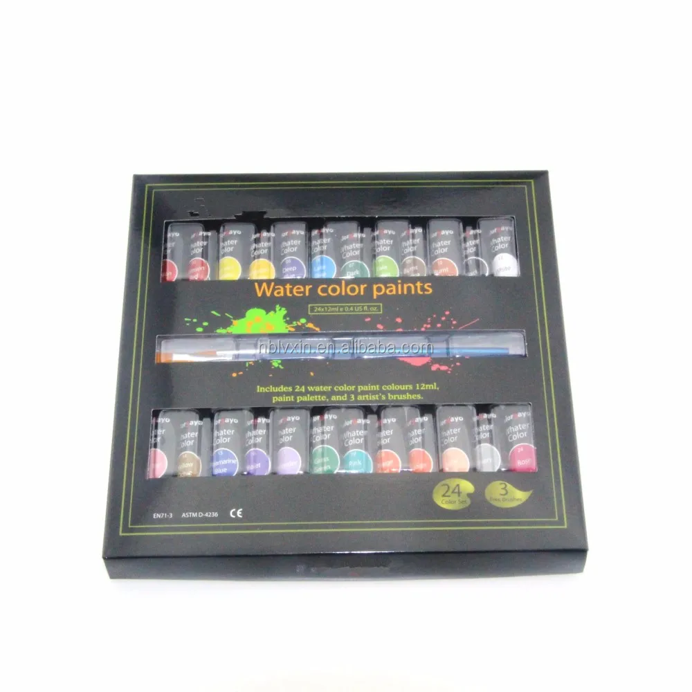 Packing: | 24 pcs paint, 3 brushes/color box; 48 color box/ctn | ||||