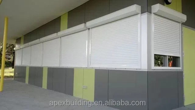 Aluminum profiles shutter doors is specially designed high-strength wind-resistant door against wind of typhoons in coastal areas, sand inland area , wind-resistant door plate use high strength color-coated steel door galvanized steel cold-rolled, it is anti-typhoon, tamper , rain, moisture, cold, sun, sand, every noise and other functions, is applicable to any field of architecture.