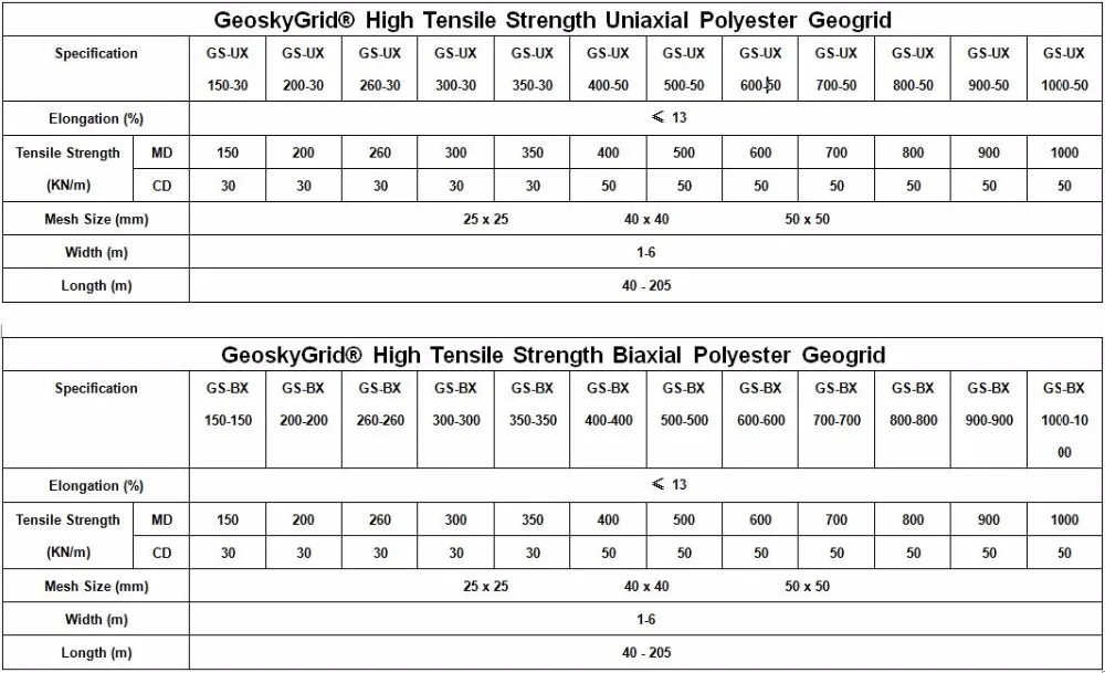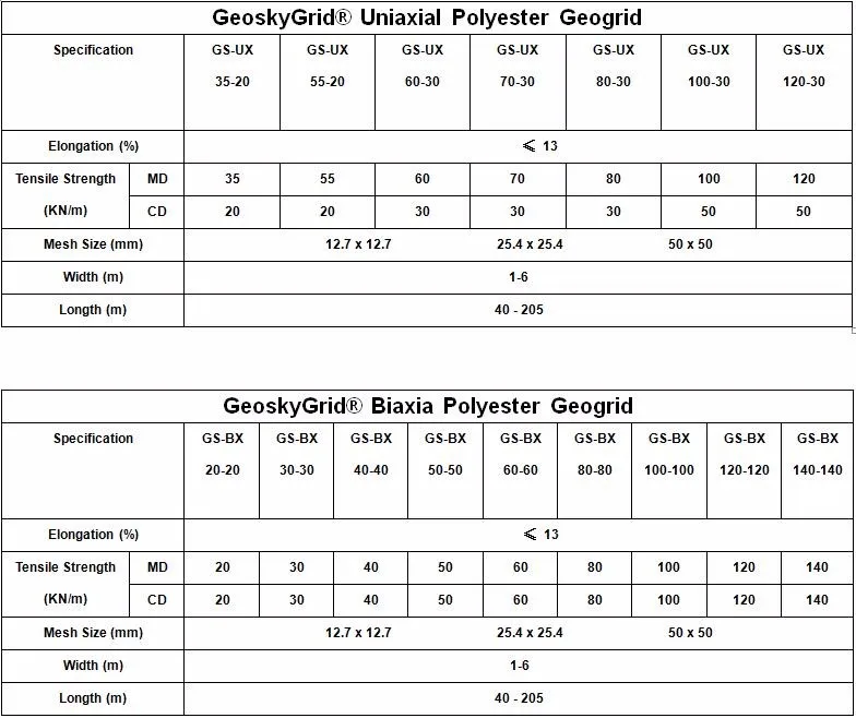 High Tensile Strength Polyester Geogrid Technical Data Sheet