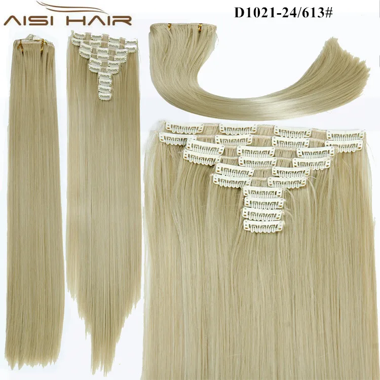 | Aisi New Arrival Fair Price Silky Straight Hair Pieces Synthetic 22 Clips in Hair Extensions with Various Colors | |