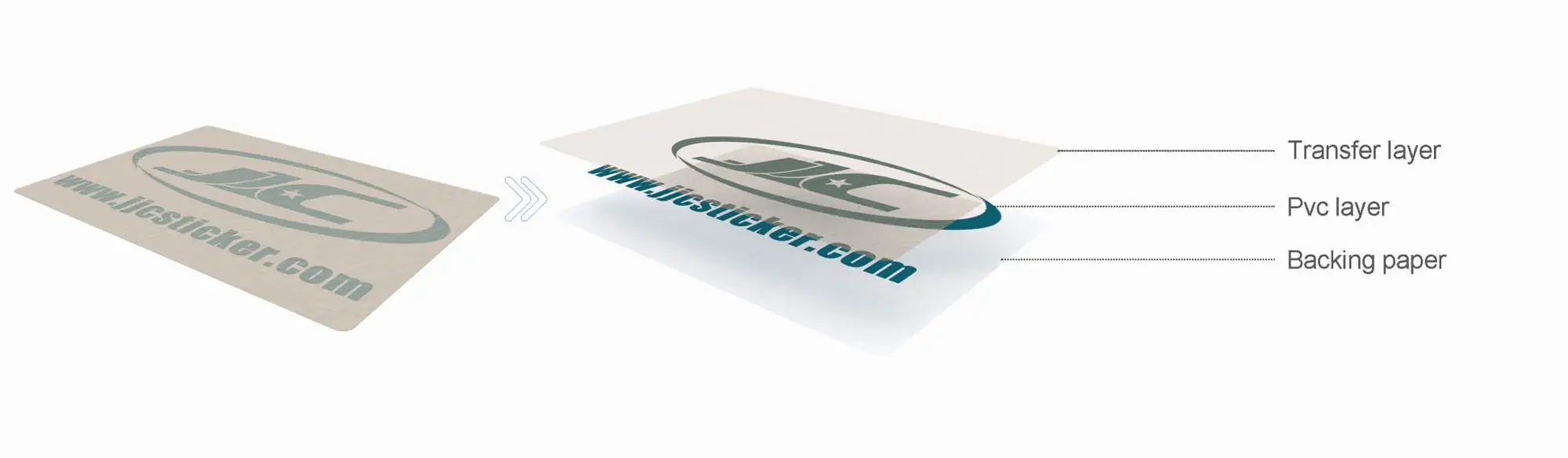 Our sticker for car are comprised of 3 layers: the transfer paper, PVC layer, and backing paper.The transfer layer is half transparent paper,we can also use clear pvc for your transfer layer.