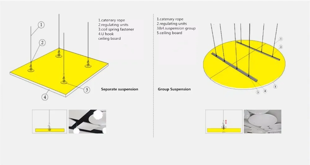 With free open design,Special-shaped suspension board endows new definition of the space and presents new feeling of the hall combined with vivid surface shape and gorgeous color. Special shaped glass fiber/rock wool ceiling board provides you with creative sound-absorbing solutions, improves voice clarity and brings comfortable acoustic experience. The beautiful and innovative frame-less independent sound-absorbing ceiling is easy to install and particularly suitable for the area in which the suspended ceiling cannot be applied.