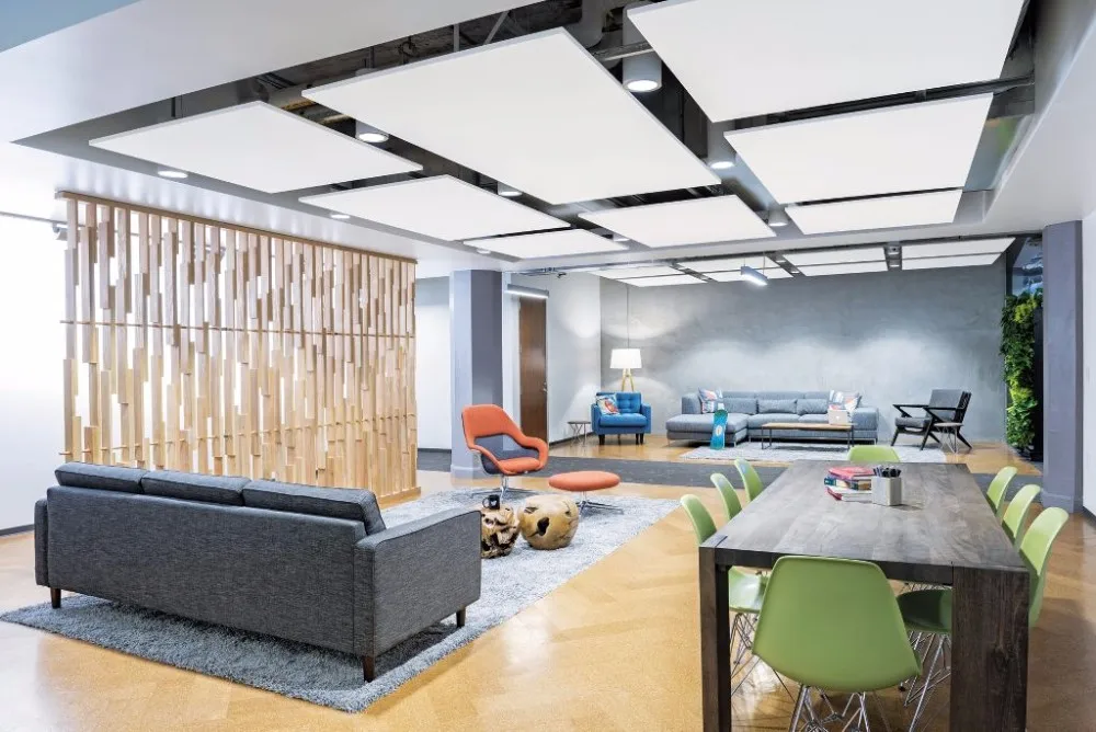 The Sanxian acoustic could offers excellent sound absorption characteristics in a number of smart architectural finishes. These attributes enable it to be utilized in virtually any interior environment requiring noise control. Each could consists of rigid high density acoustical fibre glass. A variety of edge and corner styles are available, and some may be used in combination to create unique and attractive designs. Finishes include fire rated acoustical fabrics and vinyls, in a variety of colors and textures. Whether the situation requires stringent acoustical qualities or demands a large range of finishes in order to match existing decor, Sanxian will have a could for your application.