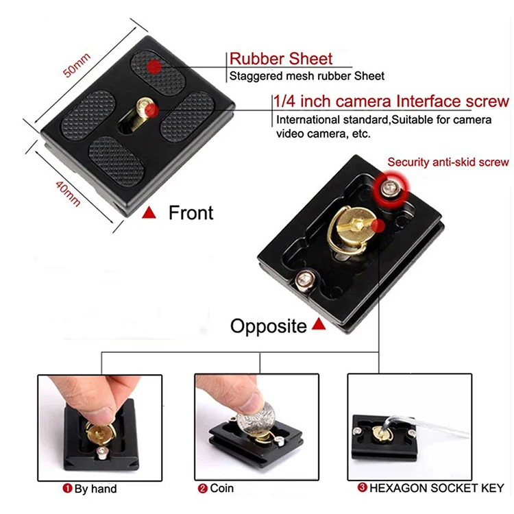 A removable quick-release plate is suitable for cameras with 1/4" screw.