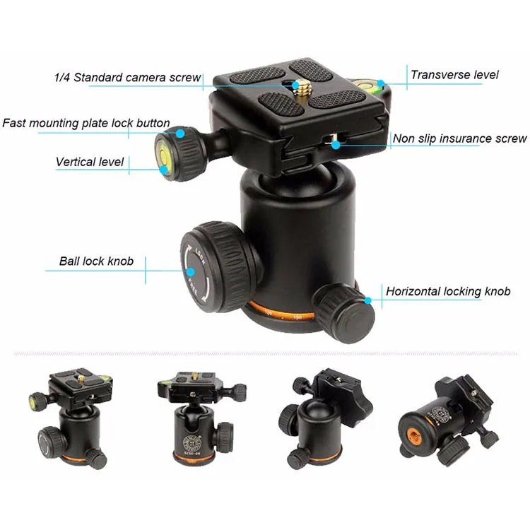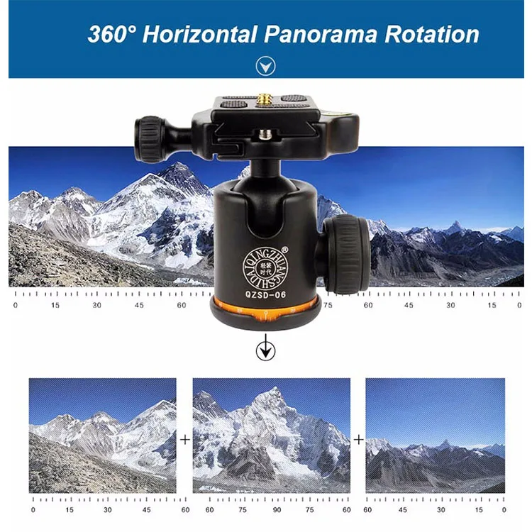 QZSD Q06 Aluminum Tripod Ball Head With Quick Release Plate & Two levels Max Load 6KG Camera Tripod Beike