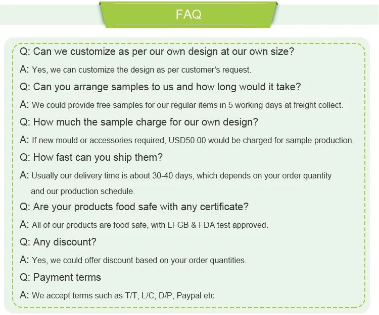 | Food-Safety | Available with FDA, LFGB test |