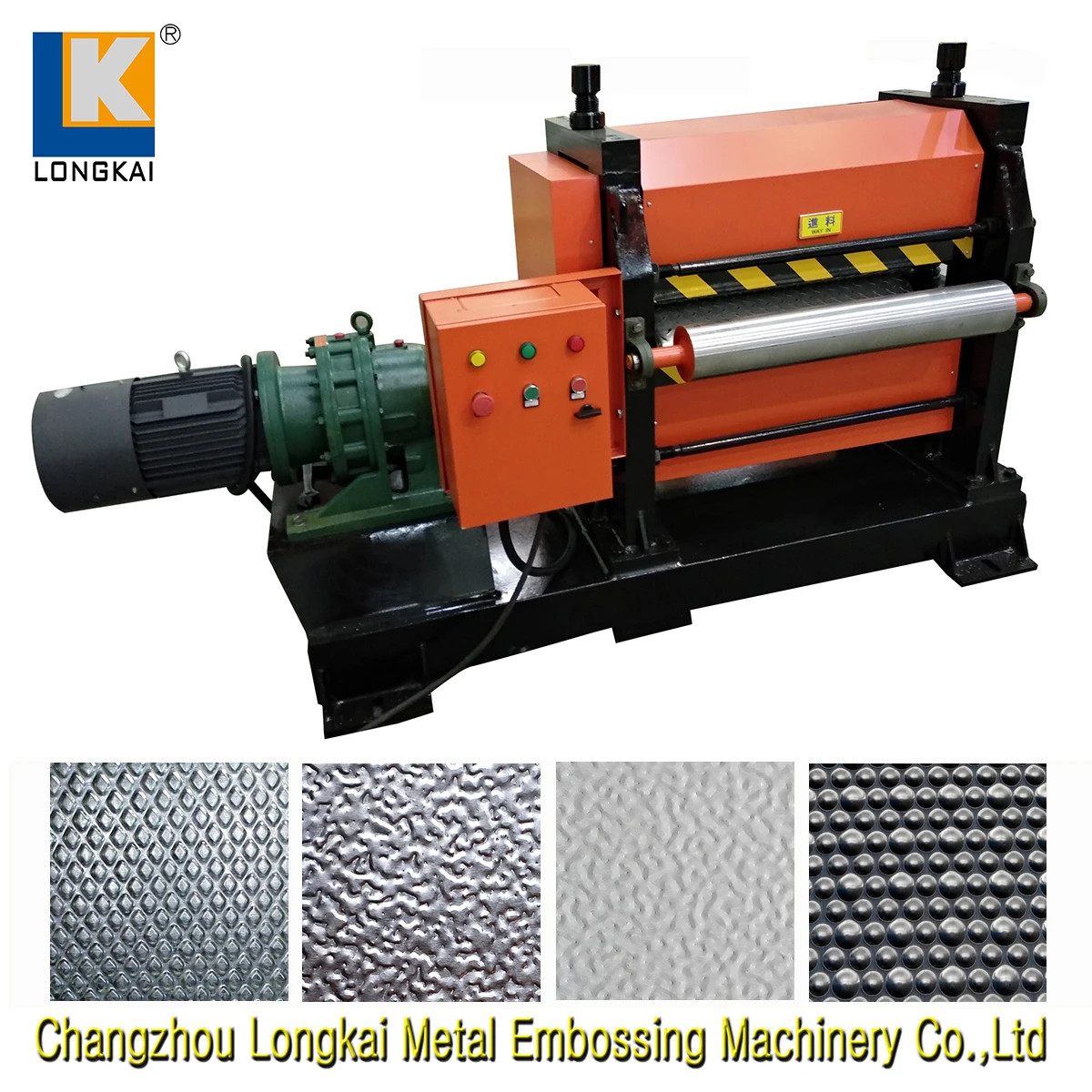 The metal embossing machine suitable for aluminum, colorful steel sheet, heat zinc plated sheet, copper sheet, cold rolling steel sheet, stainless steel sheet, and so on.