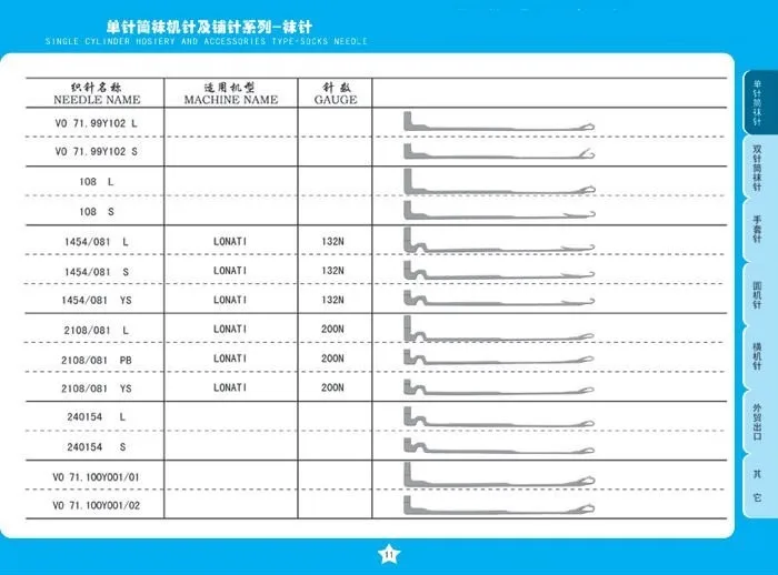 1.All kinds of needles, sinkers, jacks,selectors for all sock machine knitting machines.