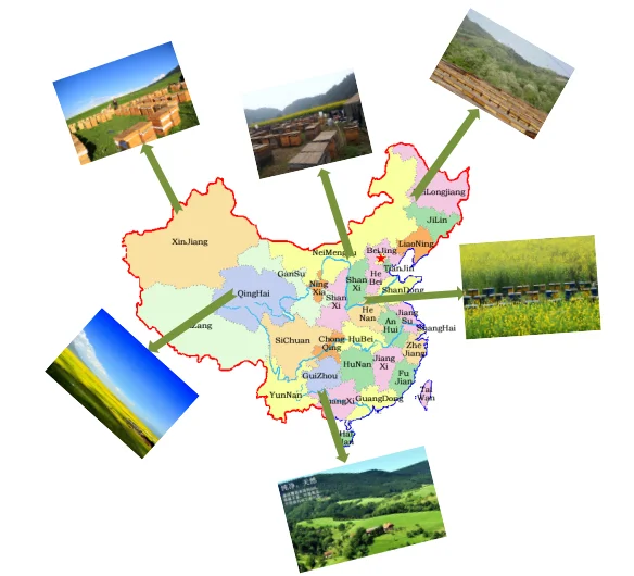 Beekeeping farm: We have our own beekeeping farms in mountains in a range of 300 to 1200 meters of altitudeQinghai, Shannxi, Yunnan, Sichuan...