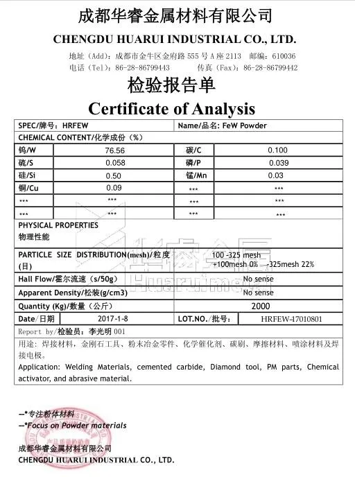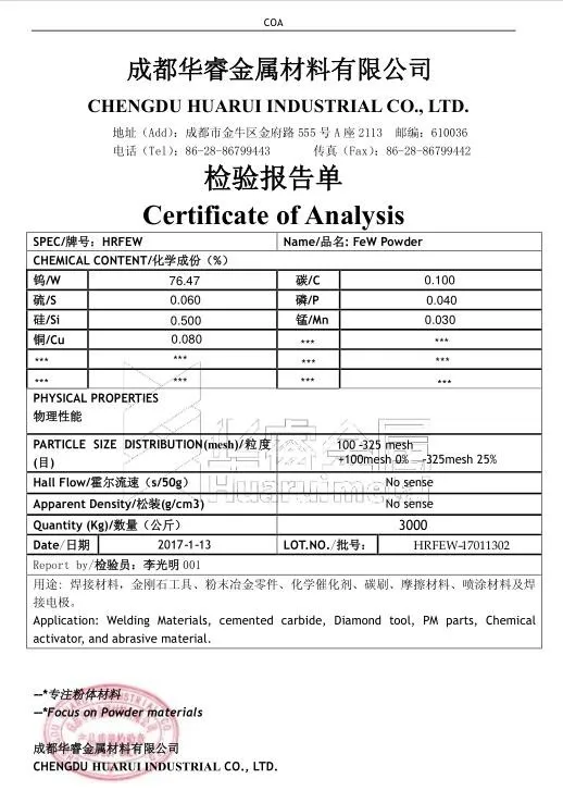 Ferro Tungsten (FeW) is widely used as additive in making high performance alloys bars/plates, etc.