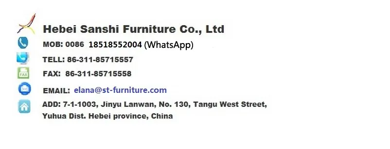 Hebei Sanshi furniture Co., Ltd was located in Shengfang town, with the standard workshop 2000 square meters. We are a professional manufacturer and trader of glass metal dining table, MDF dining table, PU leather dining chair, plastic modern chair, coffee table, bar stools and tables, other metal glass furniture.