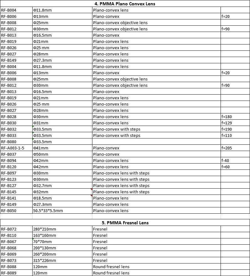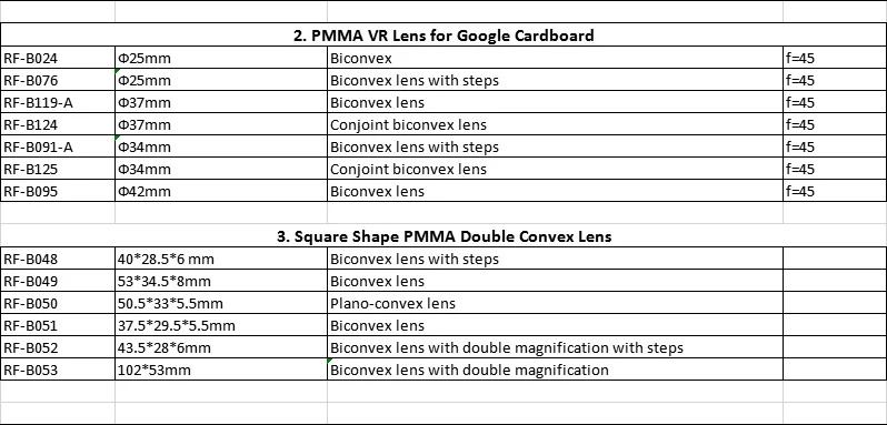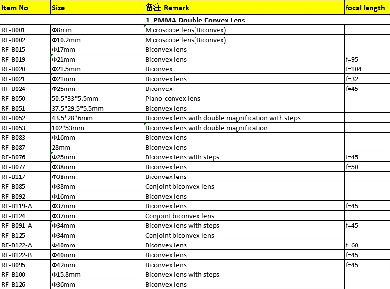 | RF-B091-A | Ф34mm | Biconvex lens with steps |