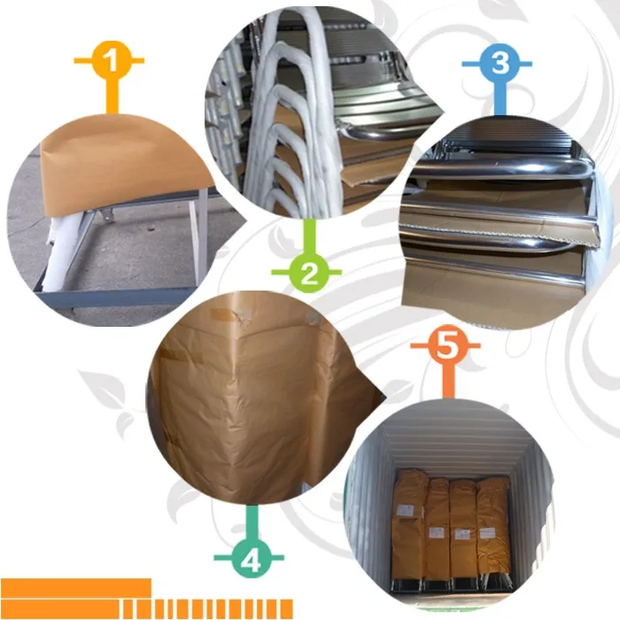 1. Pacakge: KD packing is good for transportation. Chair by stacked with trolley.
