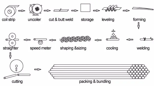 Standard flow chart of erw pipe making machine Roller fast changing used steel pipe making machine for sale: