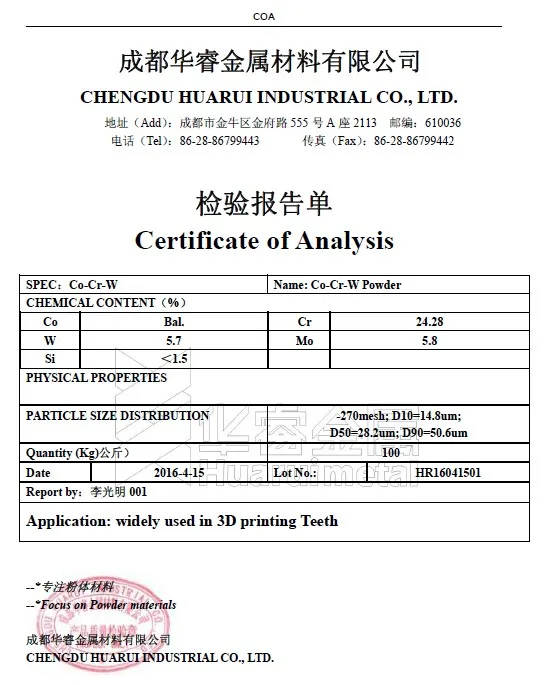 Cobalt Chromium Alloy Powder / CoCrW Powder / CoCrMo Powder | ||||||||||||||