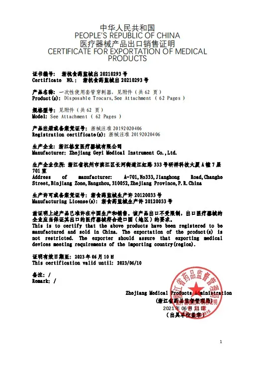 Zhejiang Geyi Medical Instrument Co., Ltd. was located in Hangzhou, Zhejiang. We are a professional manufacturer in producing disposable surgical instruments (disposable trocars, disposable surgical staplers,disposable Suction Irrigation Set,etc.) and reusable surgical instruments used in laparoscopy,urology, gynecology and general surgery, with registered brand 'Geyi' and 'Euprun'. We have two factories, one is for disposable instruments and the other reusable instruments. Our R&D team closely follows the development of medical industry and mainly focuses on technical innovation. Under the dedicated guidance of famous clinical experts and professors and combining with clinical operation experience, we ensure the "safety" and "effectiveness" of the products and make the products with higher practicality and reliability. Our company has built complete and effective quality management system, successfully passed the assessment of "Medical Device Production Quality Management Standard'' system and obtained ISO13485 Medical Device Quality Management System certification and CE certification. Our company takes benefiting patients as our permanent goal, providing high quality and complete after sales services.