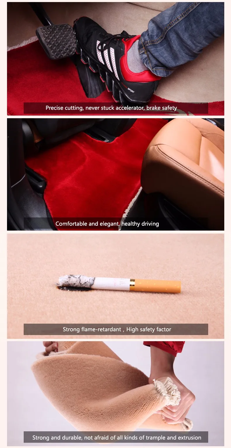 Features of Red Soft Wool Car Floor Mat Car Carpet Foot Mats