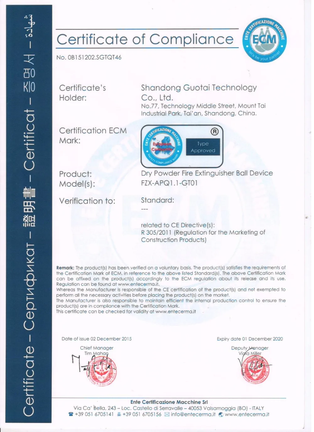 c.The validity period of dry powder fire extinguisher ball device is 5 years,free from maintenance.