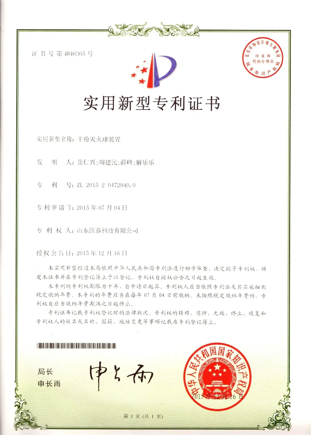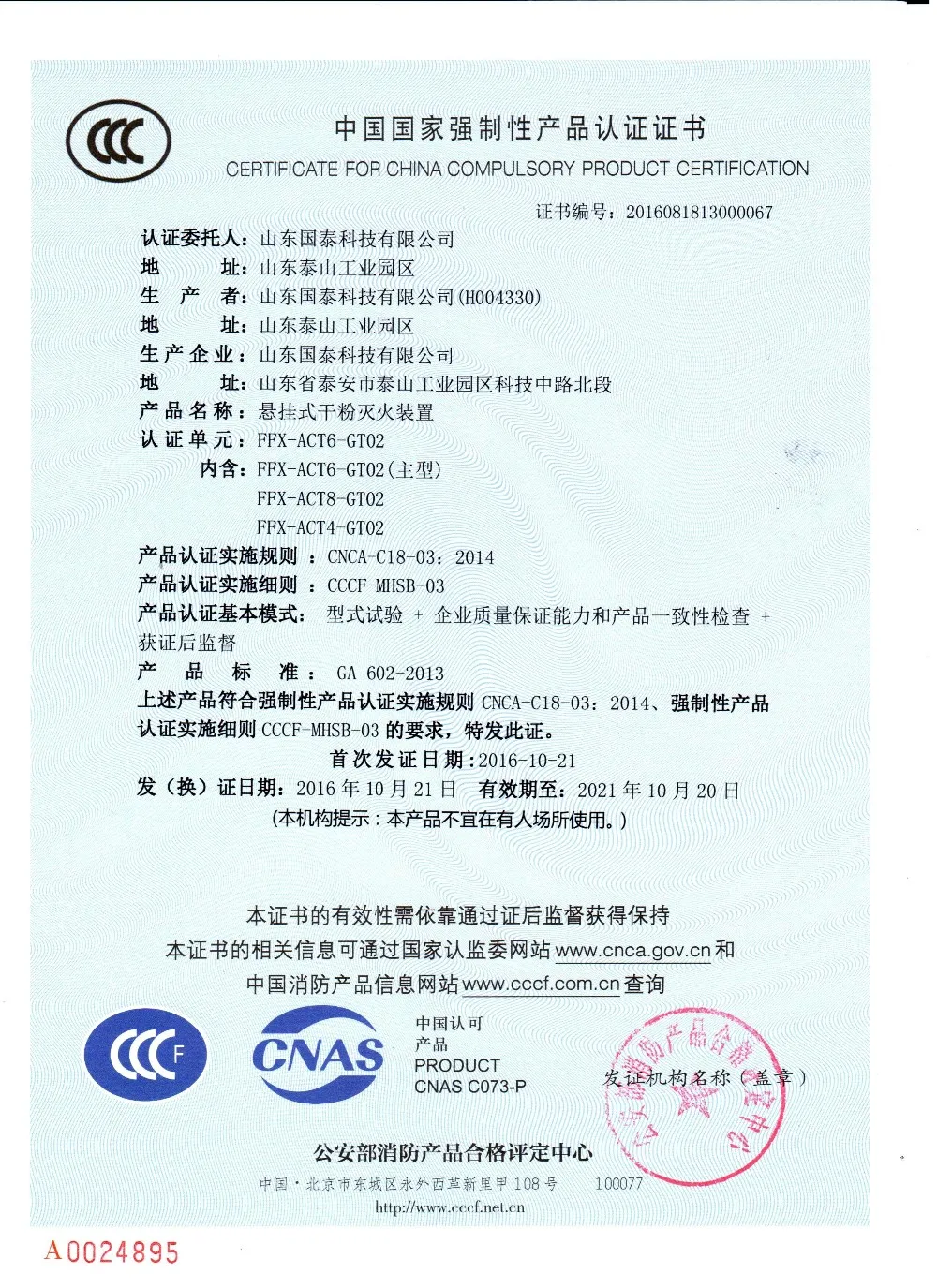 The production and test standard of dry powder fire extinguisher ball device is Q/0900 TGT001-2015.