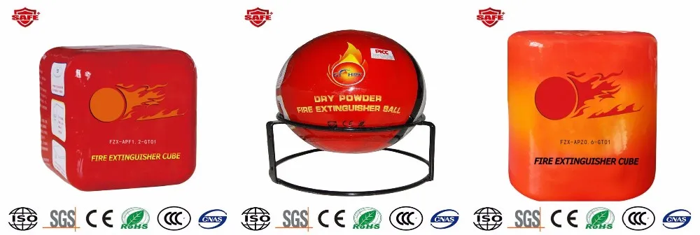 The CE approved dry powder automatic fire extinguisher ball can put out A,B,C,E,F class fire.When the fire happens in home,supermarket,hotel and bar,many big fire extinguishing devices can not put out the fire in time,many fire extinguishing devices need to be used by people who has got some professional training.Aiming to these issues,we develop a new fire extinguishing device---fire extinguisher ball.With small size,light weight and ball appearance,it can close and put out the fire in time.Even the old people and children can use it easily.The fire extinguisher ball doesn't need maintenance,which will save a lot of money for you.The life of product is 5 years.The noise can remind people to leave or come to fight the fire when dry powder fire extinguisher ball device is putting out the fire.