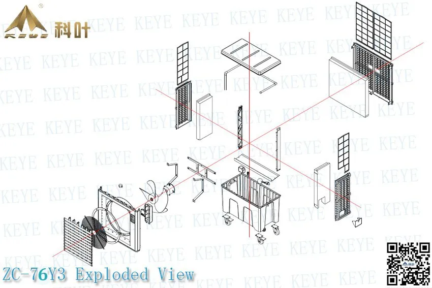 Unique design with 3-side air intake to increase the cooling effective area, high quality cellulose cooling pad. 4 - 12℃ can be reduced effectively.