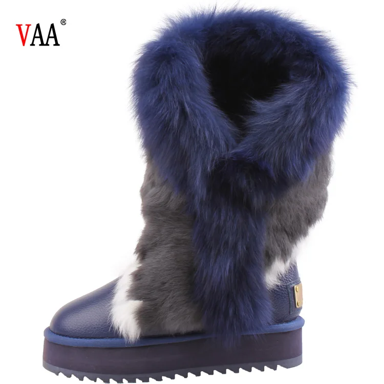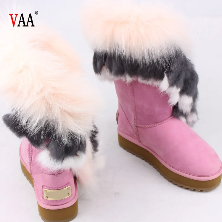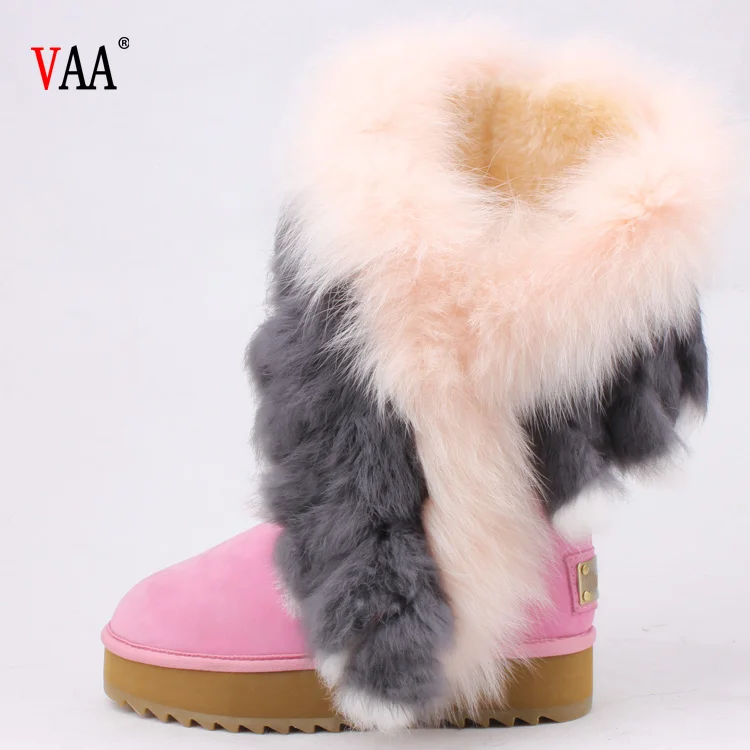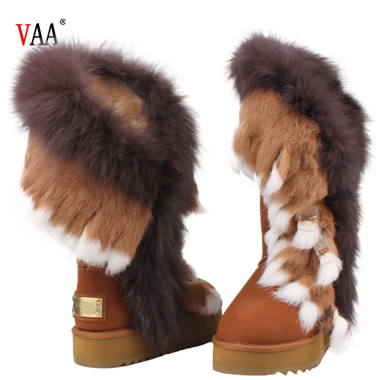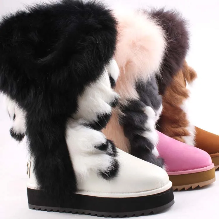 AN-CF-33 Top Sale Genuine Leather Lined Sheepskin Racoon Fur And Rabbit Hair Outside High Boots Womens Winter Boots