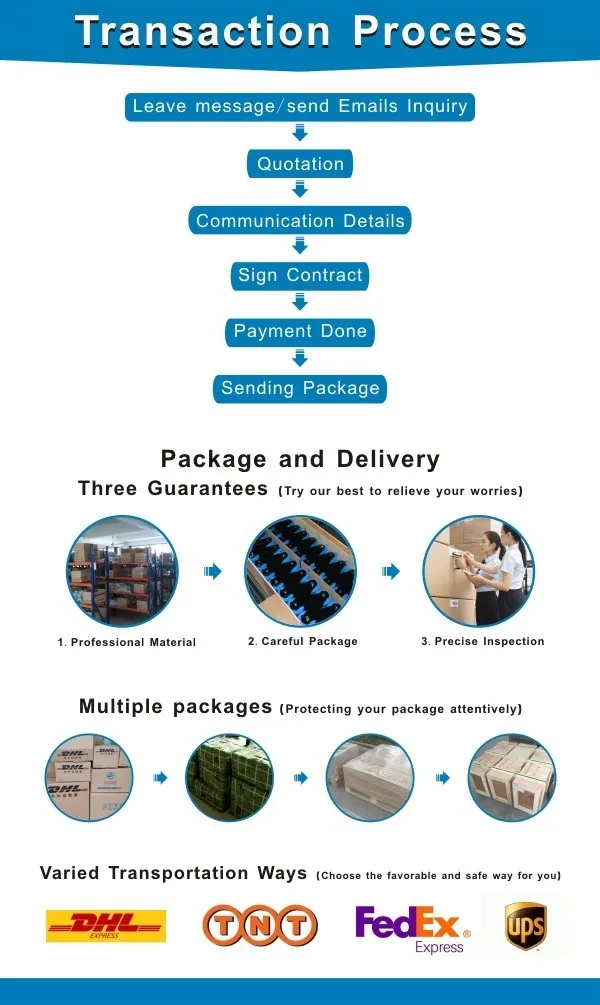 A:You can email us discuss the details after confirming we will make PI for your side and when you receive the PI pls confirm details by email.and then the payment confrimed we will prepare your order at once