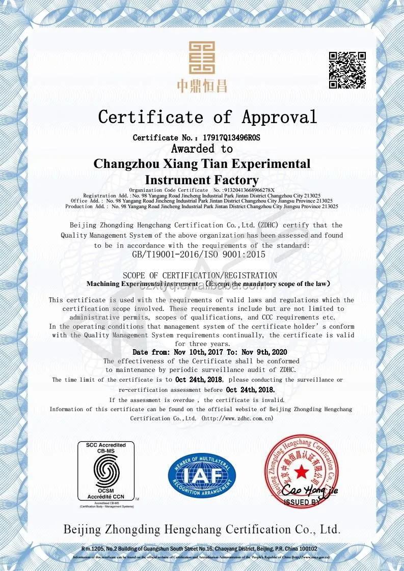 Changzhou Xiangtian experimental instrument factory is engaged in the laboratory instruments and equipment research, development, production and sales for the integration of production-oriented enterprises. Company in line with "high technology, high quality, high efficiency, high credibility" of the enterprise purpose, through the efforts of all staff, "JIN WEI" brand instrument has opened its doors to the world.