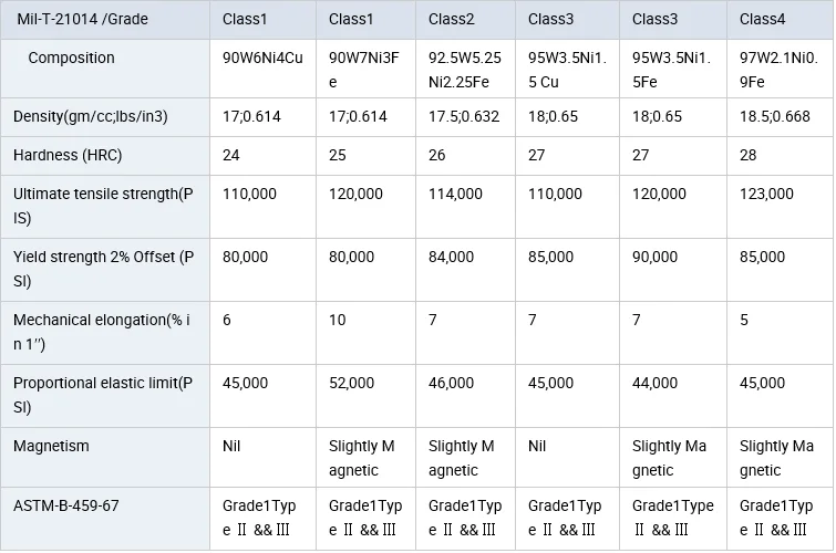 We produce tungsten alloy as: