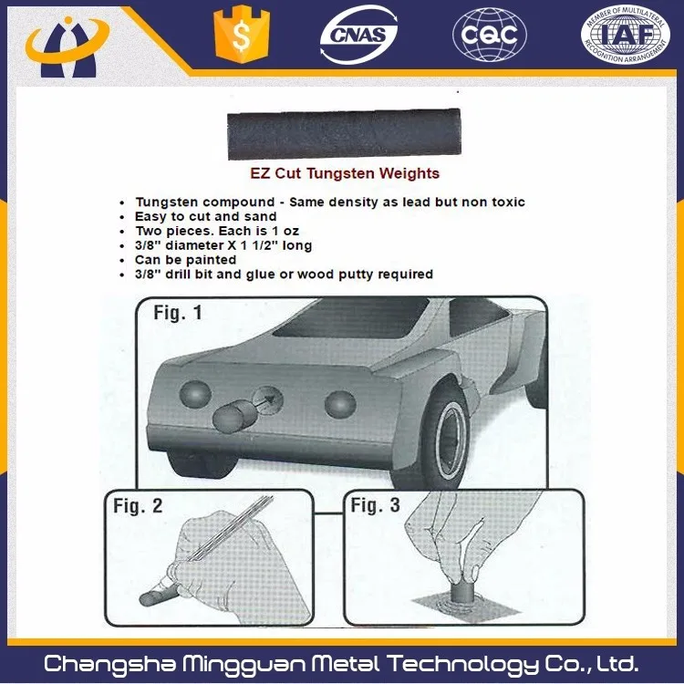 Factory tungsten pinewood derby weights OEM