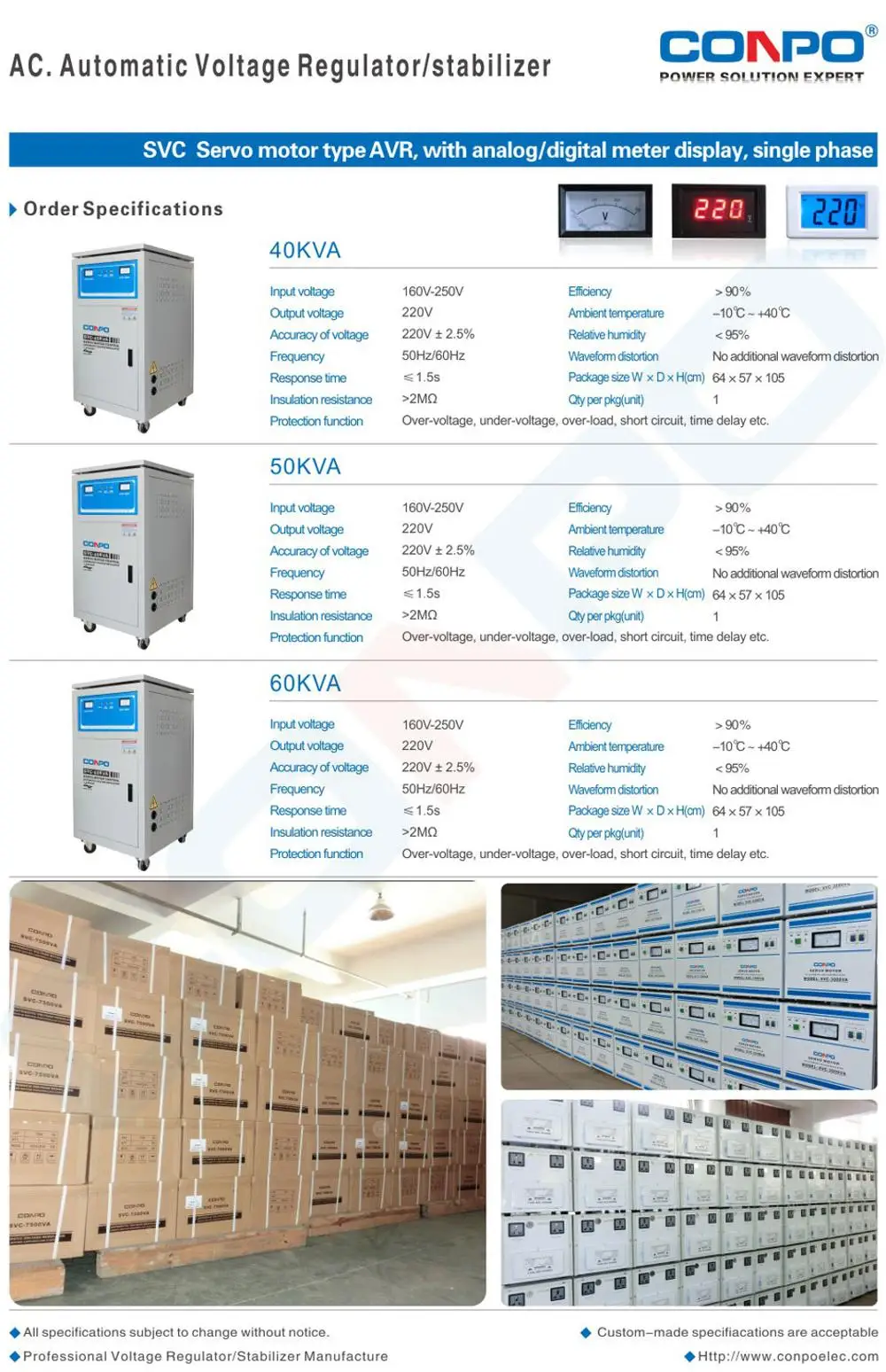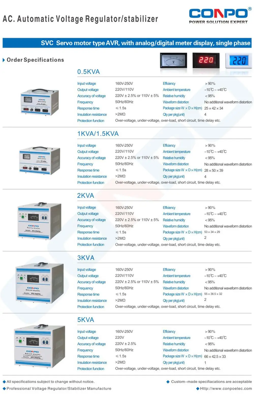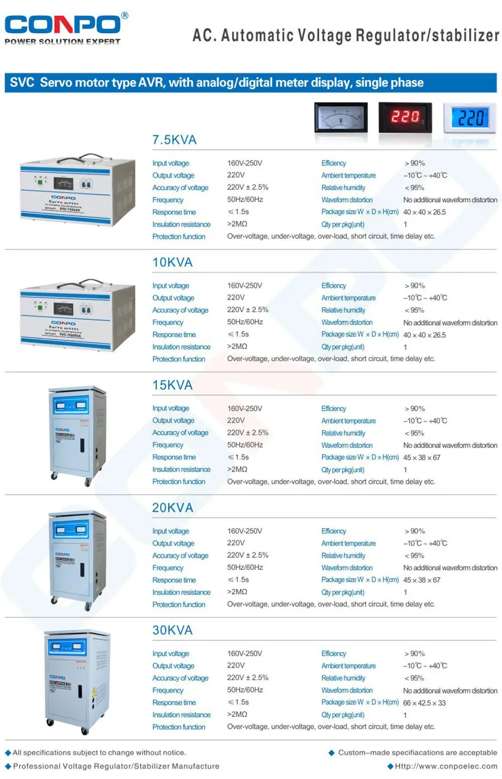 AC Automatic Voltage Regulator Stabilizer AVR 220/110V 1Phase Single Phase Servo motor type high accuracy SVC-500VA/0.5KVA/1000VA/1KVA/1500VA/1.5KVA/2000VA/2KVA/3000VA/3KVA/5000VA/5KVA/7500VA/7.5KVA/10000VA/10KVA/15KVA/20KVA/30KVA/40KVA/50KVA/60KVA