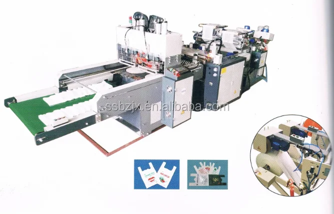 This machine can produce and print natural-color vest bags by taking HDPE and LDPE cylindrical films as raw materials, is provided with PLC control, double servo motor length fixing .it can once finish the feeding, bottom sealing, cutting, punching and transport, and has high automation and favorable economic profits