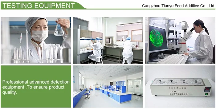 TIANYU specializes in producing and marketing feed additives and veterinary pharmaceuticals.Now we can supply Choline Chloride over 20000 MT, Yeast Powder 5000MT, Allicin 5000MT, Betaine 3000MT, Bacillus subtilis,Photosynthetic Bacteria 2000MT yearly and so on. All the products are strictly under the supervision of ISO9001:2000 alongwith its advanced equipment and modern control system, which have been sold very well domestically and overseas , especially Choline has exported to Europe, Africa, Middle East, Southeast Asia and South America . The high quality and competitive price are highly appreciated by the customers.