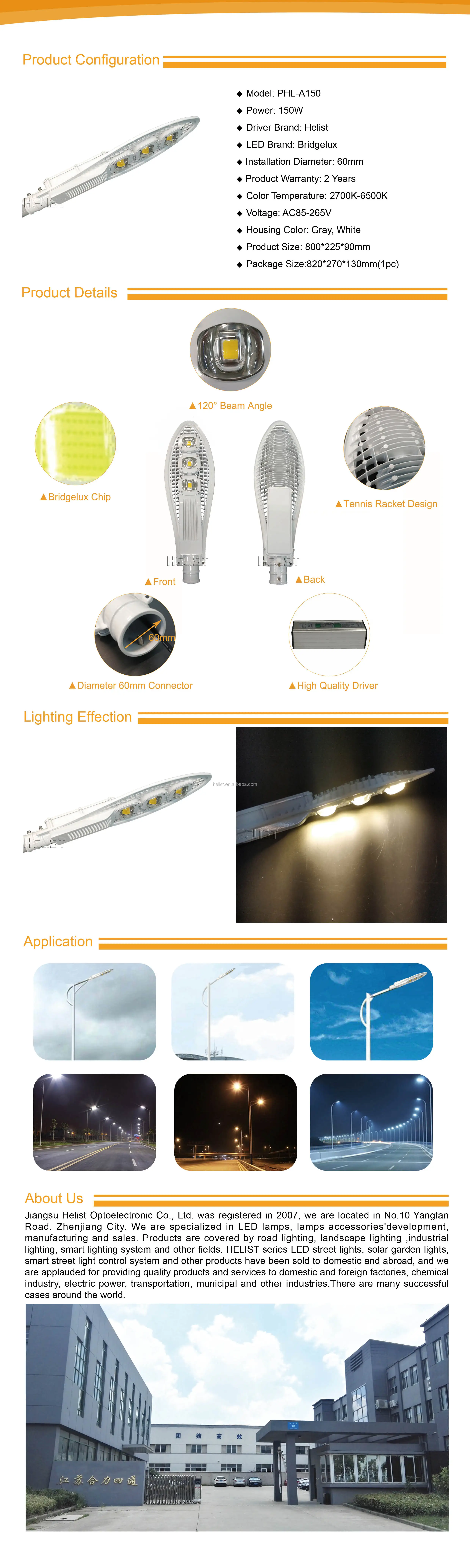 Led street light efficiency | 100lm/W~150lm/W | ||||||
